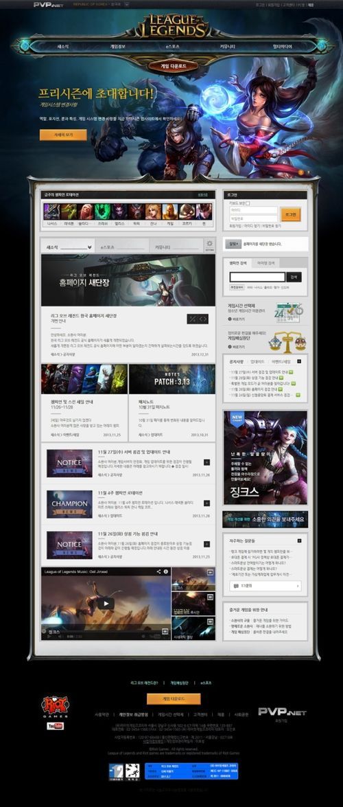 라이엇 게임즈는 26일 LOL 한국어 공식 홈페이지가 대대적인 개편 작업을 마무리하고 2014 프리시즌에 앞서 새 홈페이지를 공개했다.