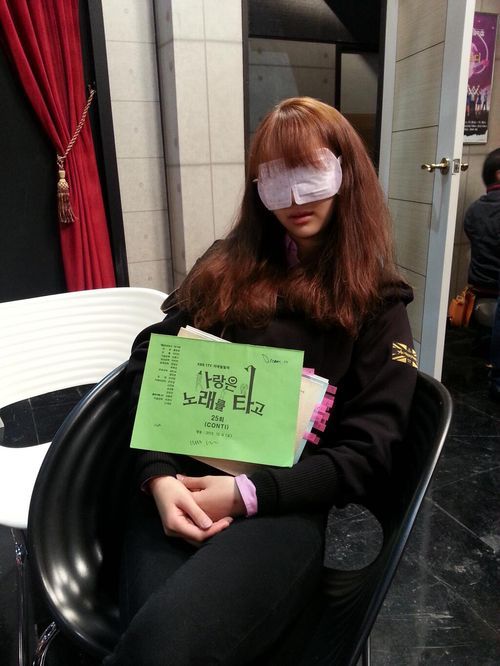공개된 사진에는 KBS 1TV 일일 드라마 ‘사랑은 노래를 타고’에 함께 출연중인 걸그룹 씨스타의 다솜이 포즈를 취하고 있다. 다솜은 촬영장 한켠에서 대본을 품에 안고 안대를 낀 채 휴식을 취하고 있다. 그의 작은 얼굴이 더욱 돋보여 눈길을 끈다.