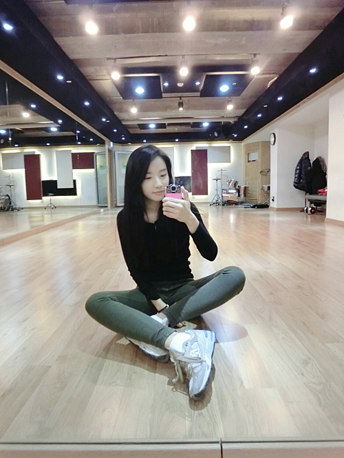 공개된 사진 속 지숙은 연습실 바닥에 앉아 거울을 통해 셀카를 찍고 있다. 편안한 복장과 민낯의 청순한 모습이 눈길을 사로잡는다.