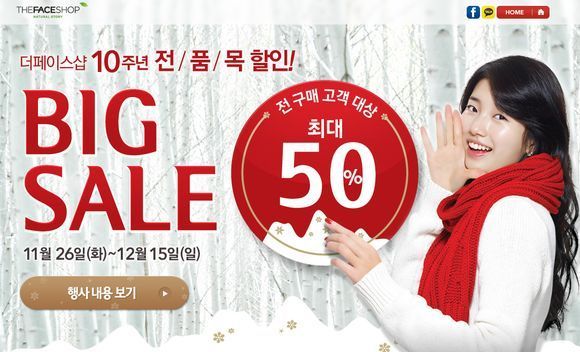 [OSEN=이슈팀] 화장품 브랜드 더페이스샵이 10주년을 맞아 전 품목 최대 50% 할인 이벤트를 실시하고 있다.