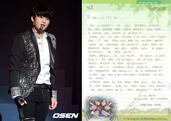 최근 가수 허영생의 공식홈페이지에는 "허영생 군이 훈련소에서 보낸 편지가 도착했습니다"라는 글과 함께 허영생의 자필편지를 찍은 사진이 게재됐다.