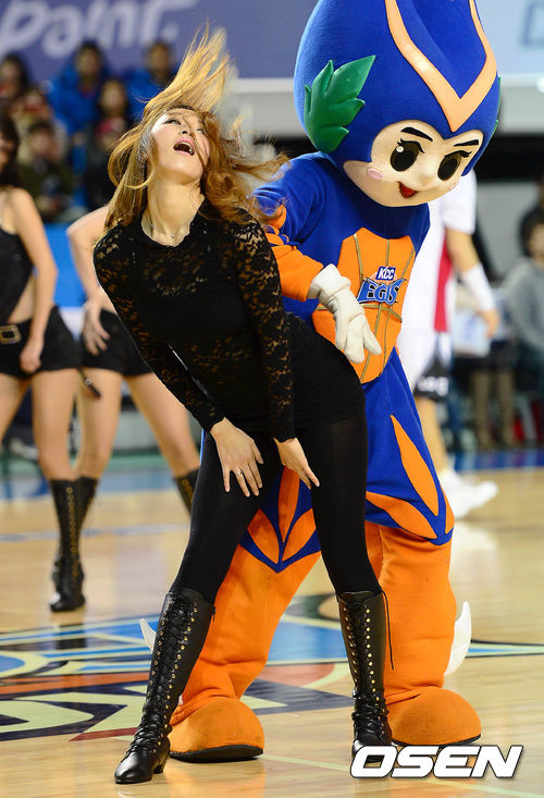 경기에 앞서 KCC 치어리더가 화려한 공연을 펼치고 있다.