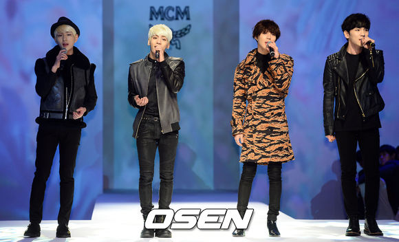 26일 오후 서울 중구 소공동 롯데호텔에서 진행된 'MCM S/S 2014 컬렉션'에서 샤이니가 축하무대를 펼치고 있다.