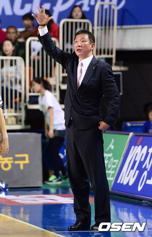 3쿼터 KCC 허재 감독이 선수들에게 작전을 지시하고 있다.