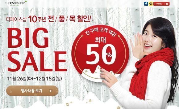 [OSEN=이슈팀] 화장품 브랜드 더페이스샵이 10주년을 맞아 전 품목 최대 50% 할인 이벤트를 내놓았다.