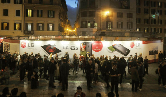 LG전자는 최근 이탈리아의 대표적인 관광명소인 로마 스페인 광장과 베니스 산마르코 광장에 'LG G2' 대형 옥외광고를 설치했다. 로마 스페인 광장과 베니스 산마르코 광장은 월 평균 방문객이 각각 약 300만 명에 달할 정도로 유명한 관광 명소다.
