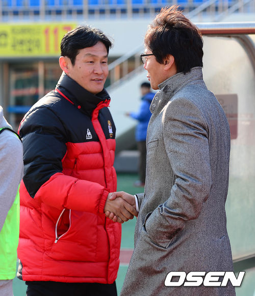 경기에 앞서 서울 최용수 감독과 포항 황선홍 감독이 악수를 나누고 있다.