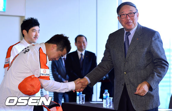 한편 한화가 이렇게 성대한 입단식을 치르는 건 2011년 12월 박찬호 이후 두 번째다. 한국인 최초의 메이저리거로 한국 야구에 상징적인 인물이었던 그는 2011년 12월 특별법을 통해 고향팀 한화 유니폼을 입었고, 서울 플라자호텔에서 성대하게 입단식을 치른 바 있다.