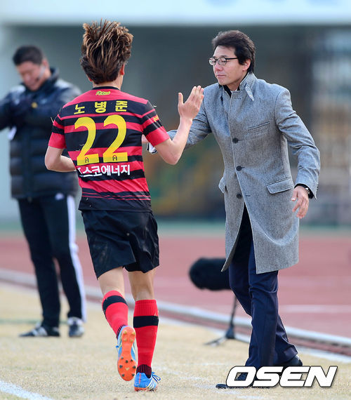 전반 포항 노병준이 추가골을 성공시키고 황선홍 감독과 하이파이브를 하고 있다.