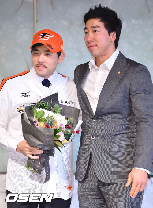 한편 한화가 이렇게 성대한 입단식을 치르는 건 2011년 12월 박찬호 이후 두 번째다. 한국인 최초의 메이저리거로 한국 야구에 상징적인 인물이었던 그는 2011년 12월 특별법을 통해 고향팀 한화 유니폼을 입었고, 서울 플라자호텔에서 성대하게 입단식을 치른 바 있다.