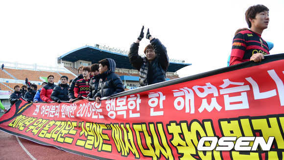 경기 종료 후 포항 선수들이 관중석을 향해 인사를 하고 있다./sunday@osen.co.kr