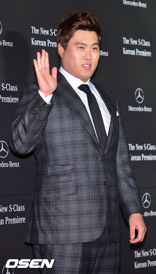 27일 오후 서울 상암동 월드컵공원 평화광장에서 열린 메르세데스-벤츠이ㅡ 플래그십 모델 '뉴 S클래스' 론칭행사에서 메이저리거 류현진이 포즈를 취하고 있다