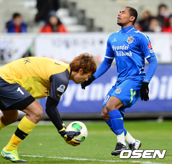 27일 오후 부산 아시아드 주경기장에서 열린 '2013 현대오일뱅크 K리그 클래식' 부산 아이파크와 울산 현대의 경기 전반 하피냐가 문전에서 슛 기회를 놓치자 아쉬워하고 있다.