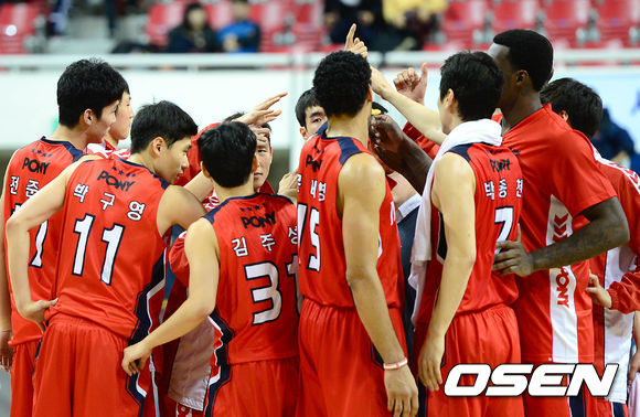 경기 종료 후 모비스 선수들이 승리의 기쁨을 나누고 있다./sunday@osen.co.kr