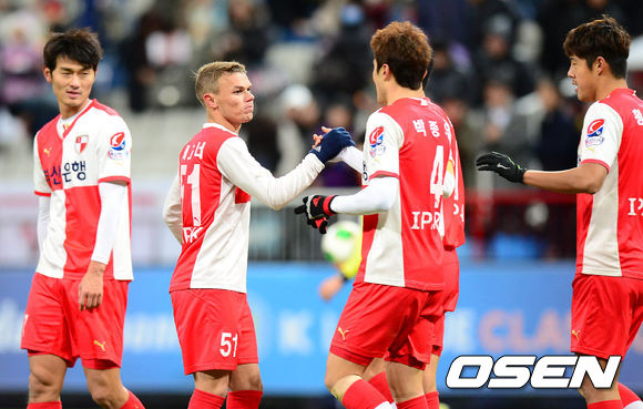 27일 오후 부산 아시아드 주경기장에서 열린 '2013 현대오일뱅크 K리그 클래식' 부산 아이파크와 울산 현대의 경기 종료 후 부산 선수들이 승리의 기쁨을 나누고 있다.