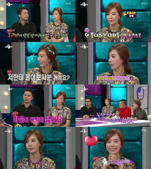 이에 '라디오스타' MC들은 "마음이 넓다"며 칭찬을 했다. 또 MC들도 생각 못한 질문을 마구 던진 절친 정준은 "쉬는 시간에 (김유미에게) 불려갔다 왔다"라고 폭로하며 열애에 대한 관심을 누그러뜨리기 위한 김유미의 노력을 밝혔다.