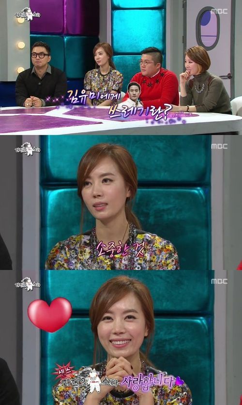 김유미는 27일 오후 방송된 MBC 예능프로그램 '황금어장-라디오스타'(이하 '라디오스타')에서 MC들로부터 "김유미에게 쓰레기란?"이라는 공식질문에 "소중한 것"이라 답했다.