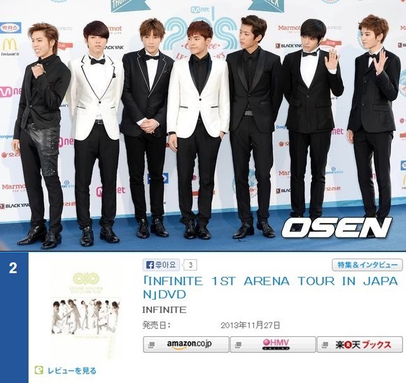그룹 인피니트가 일본 아레나 투어를 담은 DVD를 통해 오리콘 차트 2위에 올랐다.