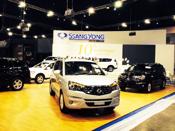 올해로 태국 시장 진출 10주년을 맞은 쌍용차는 800㎡ 규모의 전시관에 프리미엄 MPV '코란도 투리스모(현지명 뉴 스타빅, New Stavic)' 및 '뉴 코란도 C(현지명 코란도)', '렉스턴 W(현지명 렉스턴)', '카이런' 등 양산 차량 16대를 전시하고 다양한 이벤트를 마련했다.
