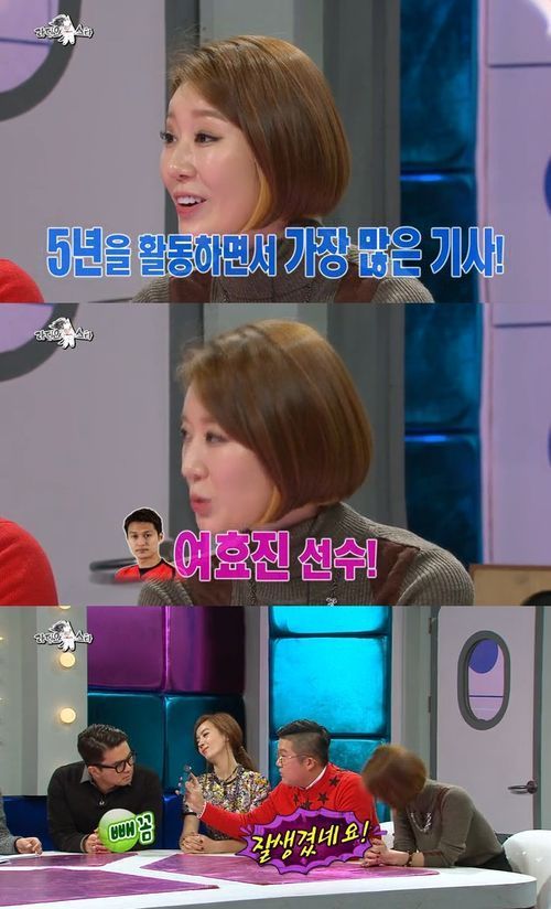 나비는 지난 27일 오후 방송된 MBC '황금어장 라디오스타'에 출연해 여효진 선수에 대해 언급했다.