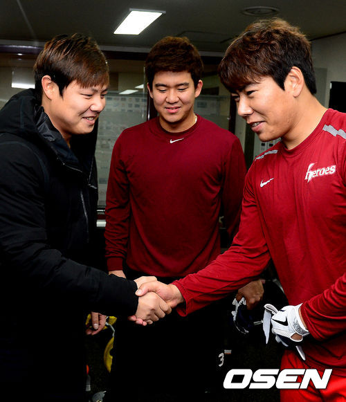 넥센 히어로즈로 트레이드 된 윤석민이 28일 오후 서울 목동구장에서 코칭스태프 및 선수단과 첫 인사를 가졌다.
