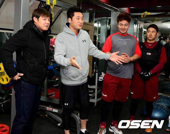 넥센 히어로즈로 트레이드 된 윤석민이 28일 오후 서울 목동구장에서 코칭스태프 및 선수단과 첫 인사를 가졌다.