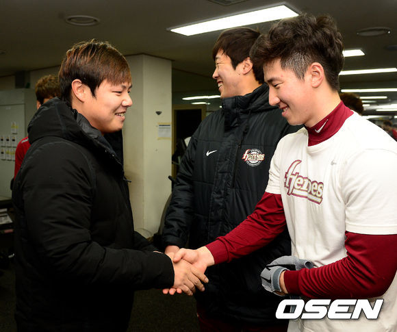 넥센 히어로즈로 트레이드 된 윤석민이 28일 오후 서울 목동구장에서 코칭스태프 및 선수단과 첫 인사를 가졌다.