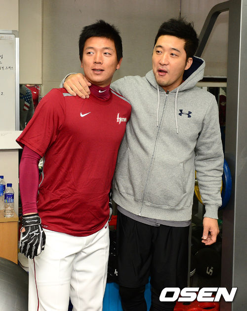 넥센 히어로즈로 트레이드 된 윤석민이 28일 오후 서울 목동구장에서 코칭스태프 및 선수단과 첫 인사를 가졌다.