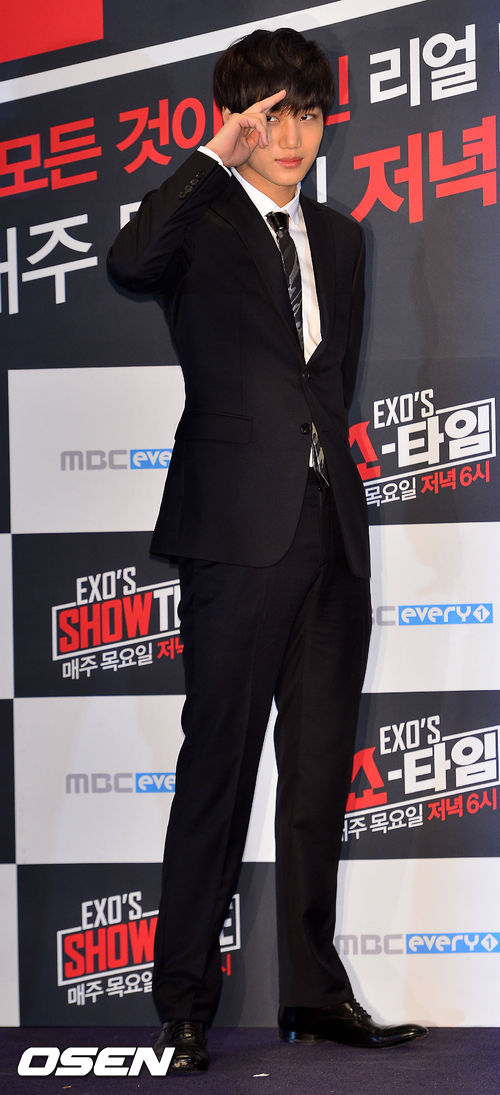 28일 오후 서울 영등포구 여의도 IFC몰 여의도CGV에서 열린 MBC에브리원 '엑소 쇼타임'(EXO's Show Time) 제작발표회에서 엑소의 카이가 포토타임을 갖고 있다.