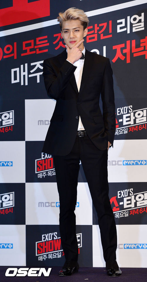 28일 오후 서울 영등포구 여의도 IFC몰 여의도CGV에서 열린 MBC에브리원 '엑소 쇼타임'(EXO's Show Time) 제작발표회에서 엑소의 세훈이 포토타임을 갖고 있다.