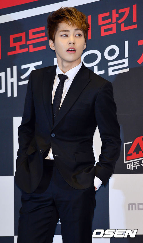28일 오후 서울 영등포구 여의도 IFC몰 여의도CGV에서 열린 MBC에브리원 '엑소 쇼타임'(EXO's Show Time) 제작발표회에서 엑소의 시우민이 포토타임을 갖고 있다.