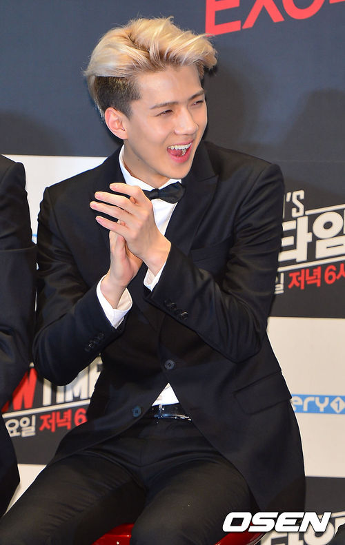 28일 오후 서울 영등포구 여의도 IFC몰 여의도CGV에서 열린 MBC에브리원 '엑소 쇼타임'(EXO's Show Time) 제작발표회에서 엑소의 세훈이 박수를 치고 있다.