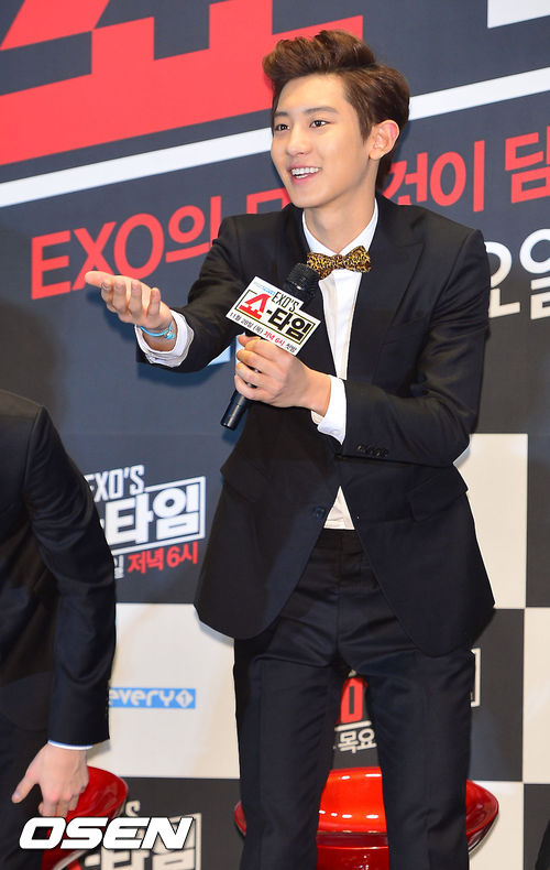 28일 오후 서울 영등포구 여의도 IFC몰 여의도CGV에서 열린 MBC에브리원 '엑소 쇼타임'(EXO's Show Time) 제작발표회에서 엑소의 찬열이 인터뷰를 하고 있다.