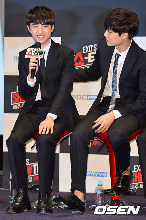 28일 오후 서울 영등포구 여의도 IFC몰 여의도CGV에서 열린 MBC에브리원 '엑소 쇼타임'(EXO's Show Time) 제작발표회에서 엑소의 디오가 부상에 대해 언급하고 있다.