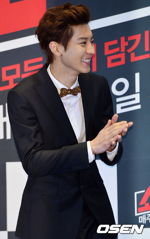 28일 오후 서울 영등포구 여의도 IFC몰 여의도CGV에서 열린 MBC에브리원 '엑소의 쇼타임'(EXO's Show Time) 제작발표회에서 엑소의 찬열이 박수를 보내고 있다.