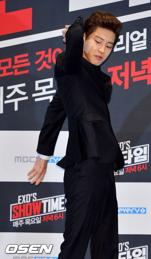 28일 오후 서울 영등포구 여의도 IFC몰 여의도CGV에서 열린 MBC에브리원 '엑소의 쇼타임'(EXO's Show Time) 제작발표회에서 엑소의 찬열이 포토타임을 갖고 있다.