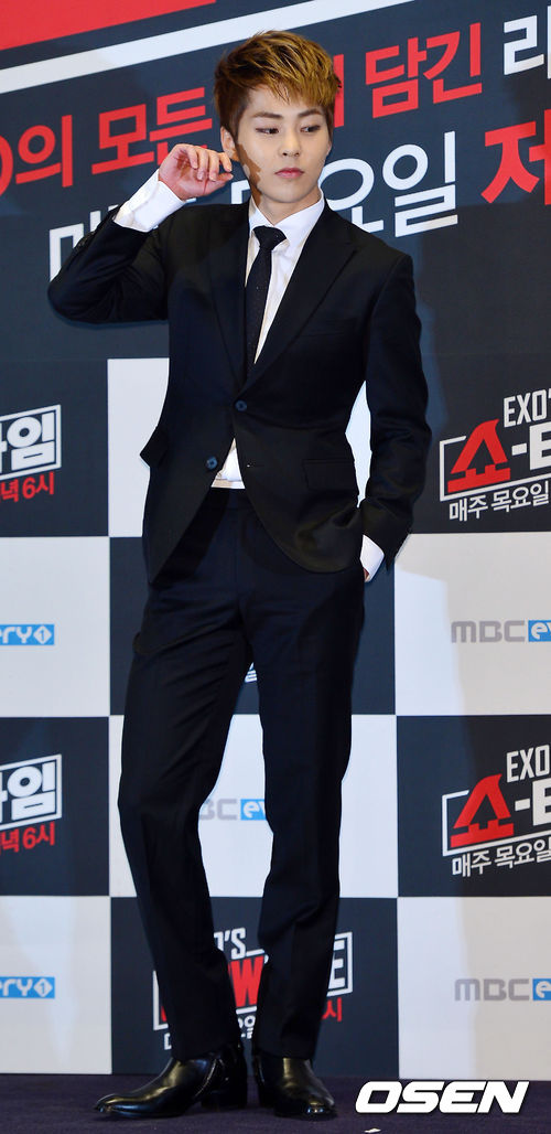 28일 오후 서울 영등포구 여의도 IFC몰 여의도CGV에서 열린 MBC에브리원 '엑소의 쇼타임'(EXO's Show Time) 제작발표회에서 엑소의 시우민이 포토타임을 갖고 있다.