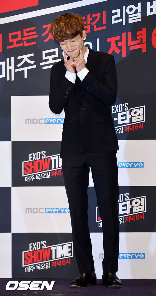 28일 오후 서울 영등포구 여의도 IFC몰 여의도CGV에서 열린 MBC에브리원 '엑소의 쇼타임'(EXO's Show Time) 제작발표회에서 엑소의 첸이 포토타임을 갖고 있다.