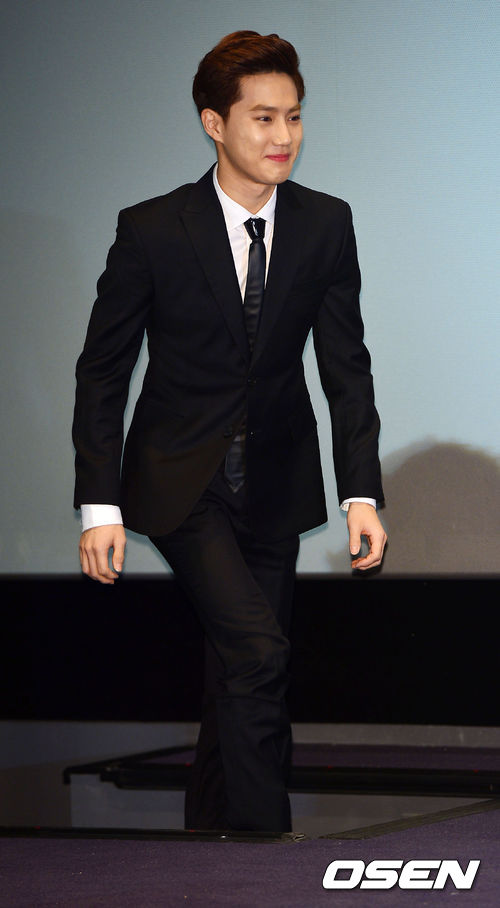 28일 오후 서울 영등포구 여의도 IFC몰 여의도CGV에서 열린 MBC에브리원 '엑소의 쇼타임'(EXO's Show Time) 제작발표회에서 엑소의 수호가 계단을 오르고 있다.