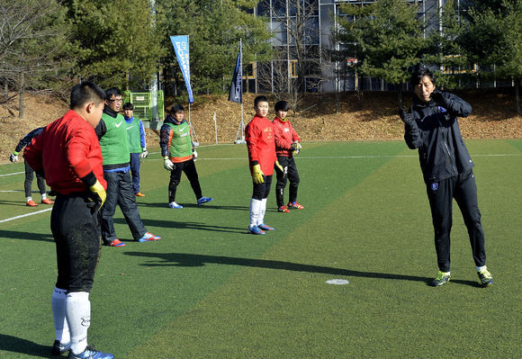 김봉수 국가대표 GK코치가 세이빙에 대한 강의를 하고 있다.