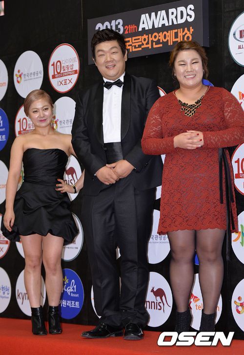 박나래, 김민경, 유민상이 포토타임을 갖고 있다.