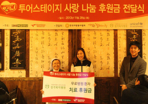 전달식에는 '2013 투어스테이지 사랑 나눔 골프대회'에 동참해 후원금 마련에 크게 기여한 투어스테이지 마니아클럽과 서희경, 고덕호 프로를 비롯한 많은 이들이 참석해 자리를 빛냈다.