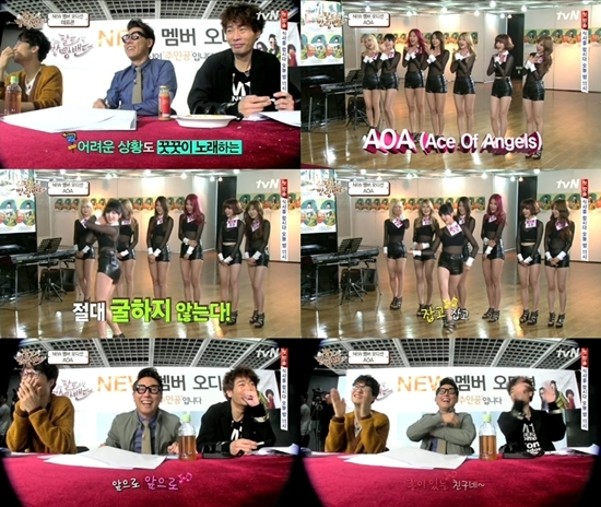 이날 AOA는 데프콘에 이어 오디션 무대에 나타났다. 소개를 마친 AOA의 찬미는 심사위원들 앞에서 이른바 '입춤'을 춰 시선을 집중시켰다. 음악 없이 입으로 소리를 내면서 춤을 춘 것. 뿐만 아니라 AOA는 가창력을 뽐낼 수 있는 노래도 부르며 열심히 오디션에 응했다.