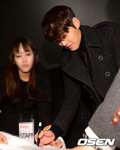 28일 오후 서울 CGV 강남에서 열린 몽키3뮤직과 함께하는 영화 '친구2'(감독 곽경택) 시사회 이벤트에서 배우 김우빈이 팬들을 위해 티셔츠에 사인을 하고 있다.