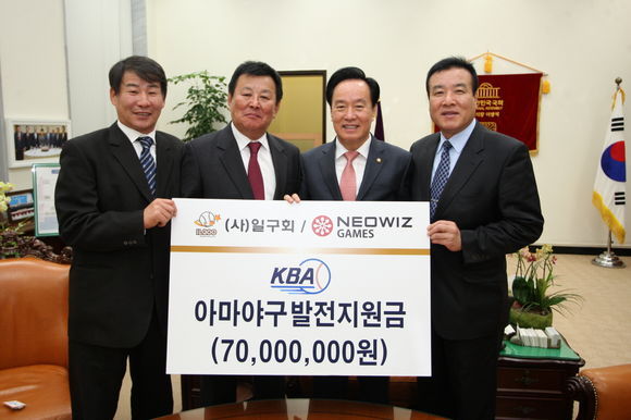 이 회장은 아울러 “야구게임 슬러거(slugger.pmang.com)를 운영하는 네오위즈게임즈(대표 이기원)가 흔쾌히 나서 이번 지원이 성사됐다”며 “네오위즈게임즈도 한국 야구의 지속적인 성장과 발전을 위해서는 아마추어 야구가 튼튼해져야 한다는 데 인식을 같이하고 있다”고 말했다.