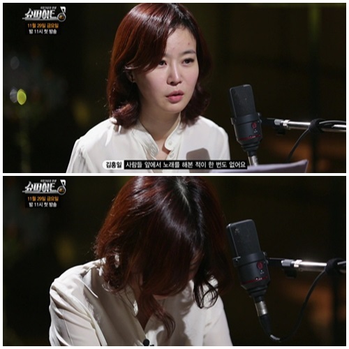 지원자는 겨우 마음을 가다듬고 노래를 들려주기 시작했고 히트 프로듀서들은 다행히 노래를 들을 수 있었다.