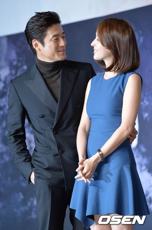 배우 지진희와 한혜진이 제작발표회에 참석해 포토타임을 갖고 있다.