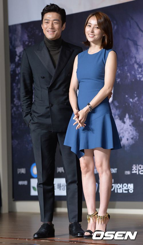 배우 지진희와 한혜진이 제작발표회에 참석해 포토타임을 갖고 있다.