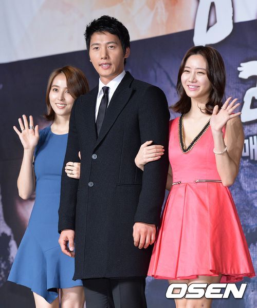 배우 한혜진, 이상우, 한그루가 제작발표회에 참석해 포토타임을 갖고 있다.