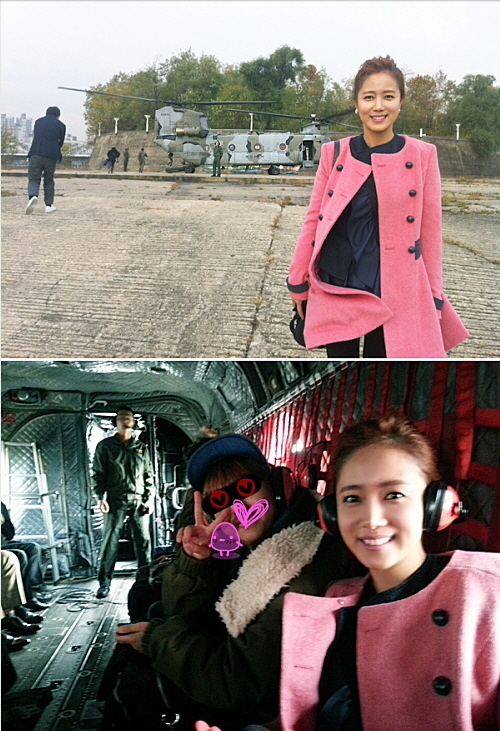 공개된 사진 속 최송현은 대전 계롱대를 향해 비행중인 헬기 안에서 여성스런 핑크색 코트를 입고 즐거운 표정을 짓고 있다. 특히 또렷한 이목구비와 매끈한 도자기 피부를 자랑해 보는 이의 시선을 사로잡는다.